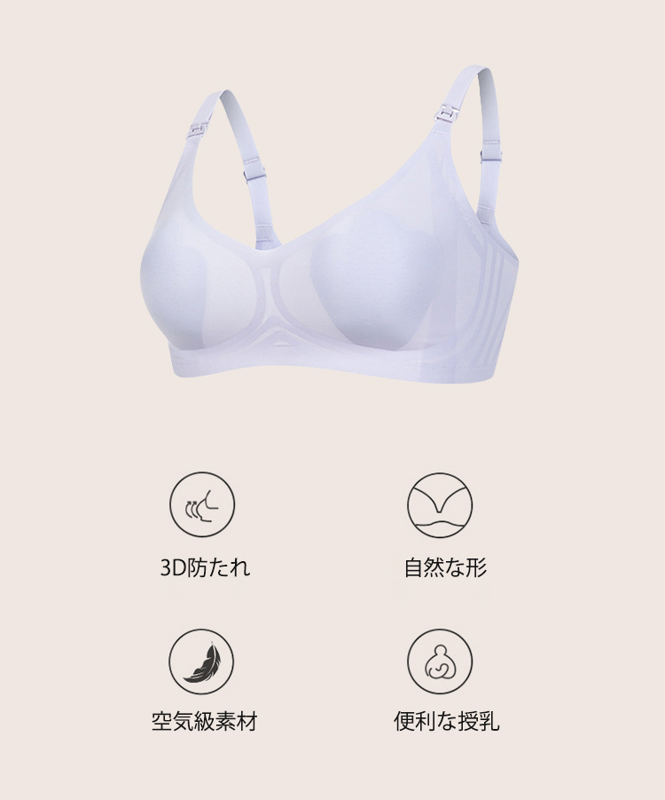 夏用にデザインされた授乳ブラで、マスク のように薄く、通気性100万個の穴があ り、シルクのような涼しさで着用できる。
