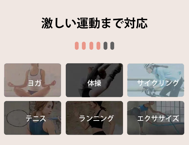 ウォーキングのようにハードな運動でなくても、からだを動かすとバストは上下に動いています。揺れる不快感を軽減し、パフォーマンスをよくするためにも揺れをおさえてくれる機能に優れたスポーツブラを選びたいもの。
