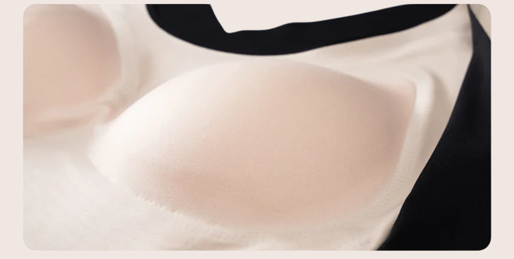 内蔵された衝撃吸収素材が運動時の振動を軽減し、バストをしっかり保護します。
